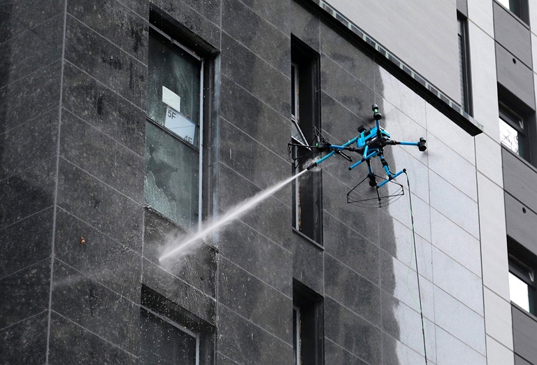 살수 드론은 건물 해체 공사 때 먼지를 줄이기 위해 물 뿌리는 작업을 담당한다. 공사 중 작업자 근접 없이 해체 구조물에 드론 살수가 가능하고, 위험도가 높은 고층부 작업도 가능해 위험을 낮추고 생산성을 높일 수 있다.