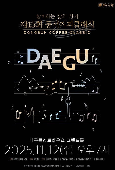 동서식품은 다음달 12일 오후 7시 대구콘서트하우스 그랜드홀에서 '제15회 동서커피클래식'을 연다고 13일 밝혔다.