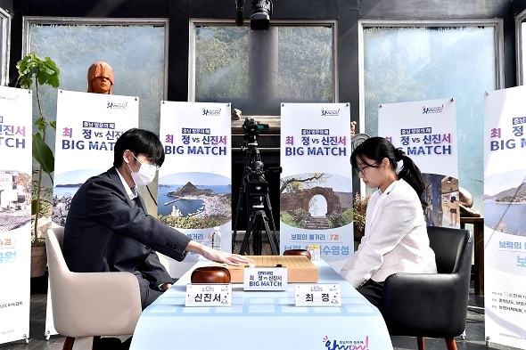 20일 충남 보령시 개화예술공원 내 모산미술관에서 열린 '충남 방문의 해, 최정vs신진서 BIG MATCH' 2국에서 신진서 9단이 최정 9단에게 126수 끝 백 불계승했다.