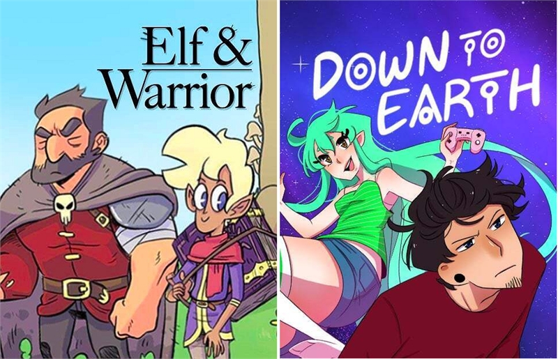 '엘프 앤드 워리어(Elf & Warrior)'와 '다운 투 어스(Down to Earth)' 표지 [네이버웹툰]