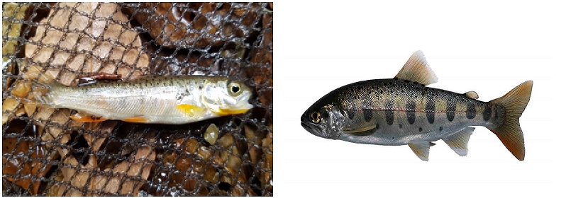 어린 열목어(왼쪽)와 산천어 [원주지방환경청]